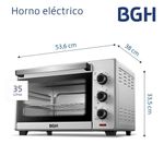 El BGH BHE35S22 es un horno eléctrico con un diseño moderno y funcional en color Silver. Cuenta con una puerta de vidrio amplia y comandos de control accesibles. Su capacidad es de 35 litros.