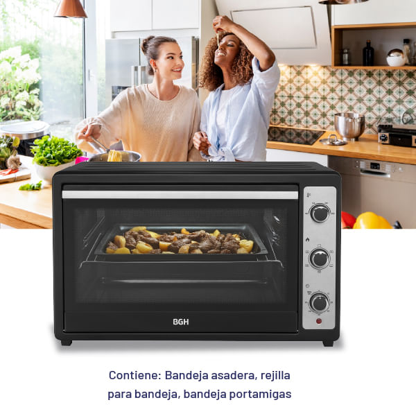 El horno eléctrico BGH BHE80M25I es la solución perfecta para quienes buscan versatilidad y potencia en la cocina. Con su gran capacidad de 80 litros, permite preparar comidas completas para toda la familia. Su panel mecánico es fácil de usar y cuenta con timer de hasta 60 minutos y función “Stay On” para cocciones prolongadas. Gracias a sus funciones de grill y convección, logra resultados crocantes y uniformes en carnes, vegetales, panes y más. La luz interior permite seguir el proceso sin abrir la puerta, manteniendo la temperatura constante. Ideal para quienes buscan un horno confiable, potente y con diseño moderno. Palabras clave: horno eléctrico BGH, horno con grill, horno con convección, horno mecánico, horno 80 litros, horno con luz interior.