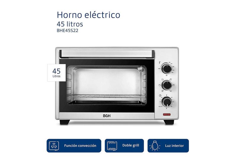 El Hornito Eléctrico BGH BHE45S22 es la opción perfecta para quienes buscan practicidad y potencia en la cocina. Con una capacidad de 45 litros, este horno ofrece el espacio ideal para preparar desde comidas diarias hasta recetas más elaboradas.