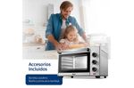 Su cocción por convección garantiza una distribución pareja del calor, logrando resultados más uniformes y rápidos. Además, cuenta con grill eléctrico, termostato regulable de 100°C a 250°C y un timer de hasta 60 minutos, lo que te permite adaptar la cocción según cada necesidad.