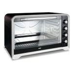 El diseño exterior en color negro con detalles metálicos aporta un estilo moderno y elegante, ideal para cualquier cocina. Su puerta de vidrio templado permite supervisar el proceso sin necesidad de abrir el horno, conservando la temperatura interna y la eficiencia energética.