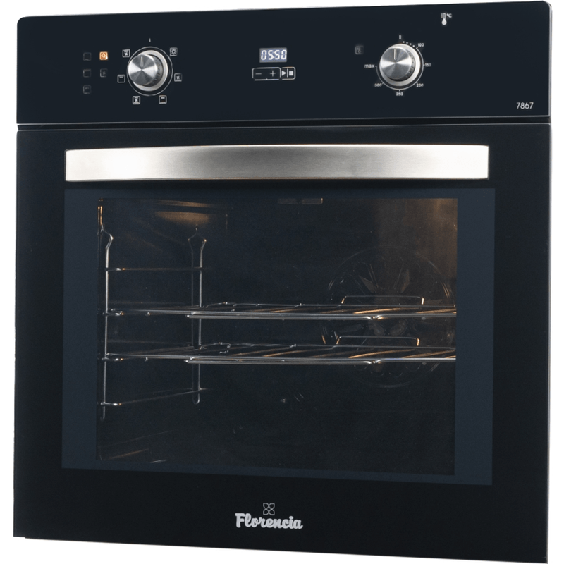 HORNO ELECTRICO 7867E FLORENCIA -Color Negro -Tipo Mecánico -Total de funciones 6 -Ancho (cm) 59,7 -Alto (cm) 59,1 -Profundidad (cm)54,5 -Convección -Grill -Resistencia Superior -Resistencia Inferior -Ventilación de Enfriamiento -Luz en el horno -Timer Digital -Puerta de horno Triple Cristal -Volumen de Horno 64.5 L -Potencia Máxima 2150 W -Termostato -Easy Cleaning -Luz interna y grill -Incluye Luz interna junto con fuentes y rejillas. -Resistencia Inferior y superior para función Grill. -Timer Digital Touch Alarma sonora -Aislación de Puerta, triple Cristal aislante de alta resistencia y fácil limpieza -Puerta desmontable -Convector Central, sistema ventilacióninterna que permite direccionar el calor según los resultados que quieran obtenerse, tiene 3 combinaciones diferentes -Panel de control Manual -Control de Funciones -Control de temperatura -Control de tiempo -Indicadores electrónicos -Modelo 7867E -Garantía fabricante 12 meses -Origen Argentina