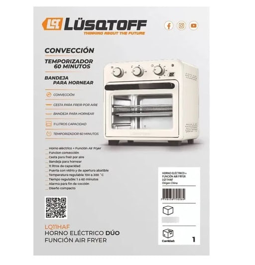 HORNO Y FREIDORA DE AIRE ELECTRICO 11 LTS LUSQTOFF LQ-11HAF
