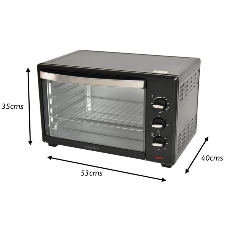 HORNO ELECTRICO 46 33L 2000W CODINI -Capacidad 33L -2000W de potencia -Funcion convecion -Luz interior -3 funciones de coccion -Timer -Control de temperatura -Enchufe 10A -Dimensiones(An x Al x Prof): 53 x 35 x40 cm -Eficiencia energetica B -Modelo 46 -Garantía fabricante 12 meses -Origen Argentina