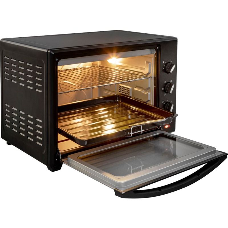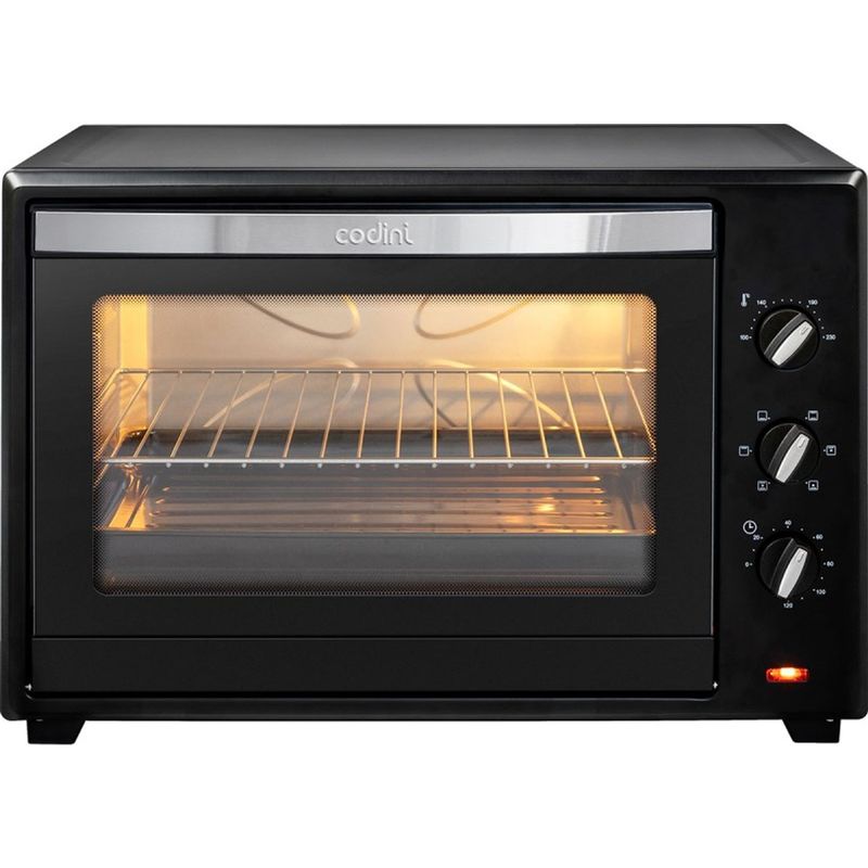 HORNO ELECTRICO HNA70CLN 49L 2000W NEGRO CODINI -Selector de temperatura 100 - 230°C -Accesorios incluidos: bandeja, rejillay pinzas -Temporizador de hasta 120 minutos con apagado automático -Función convección para cocción pareja -Doble vidrio para mayor protección -Luz interior -Consumo normal de energía 0,95 kWh -Consumo forzado de energía 0,93 kWh -Capacidad neta: 49 L -Potencia 2000W -Diferentes programas de cocción -Dimensiones(An x Al x Prof): 661x453x503mm -Color: Negro e inox -Modelo HNA70CLN -Garantía fabricante 12 meses -Origen Argentina