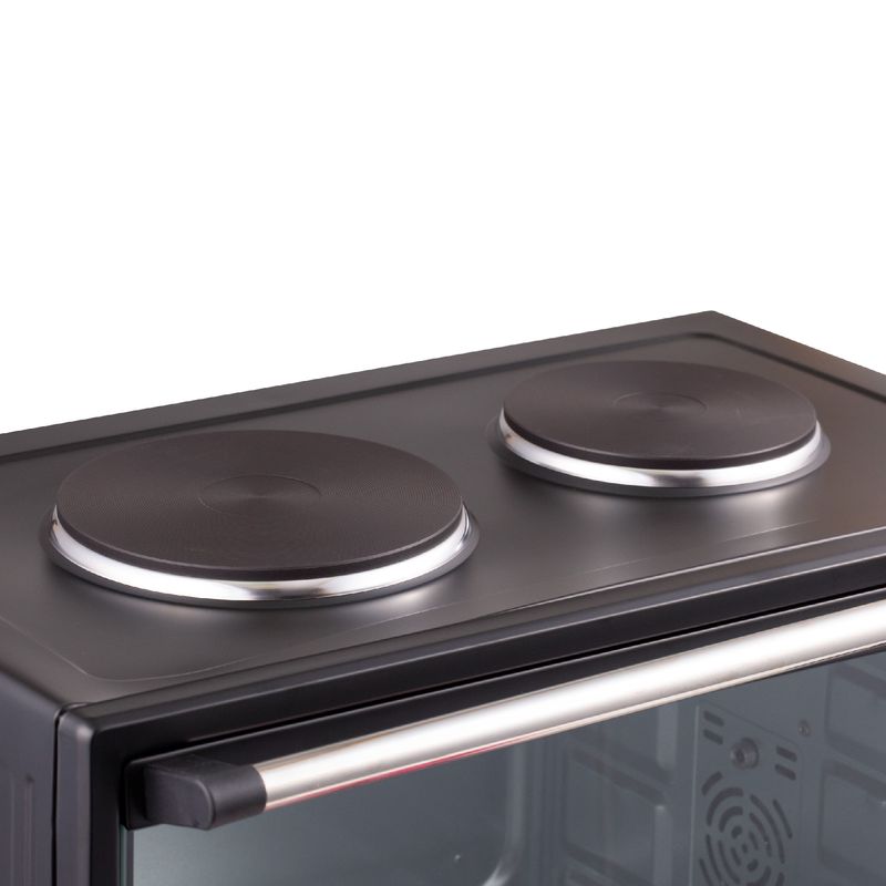 Con un diseño compacto y elegante, este horno se adapta a cualquier cocina, ofreciendo gran capacidad sin ocupar mucho espacio. Ideal para pizzas, carnes, panes y mucho más, es un aliado confiable para tus recetas diarias.