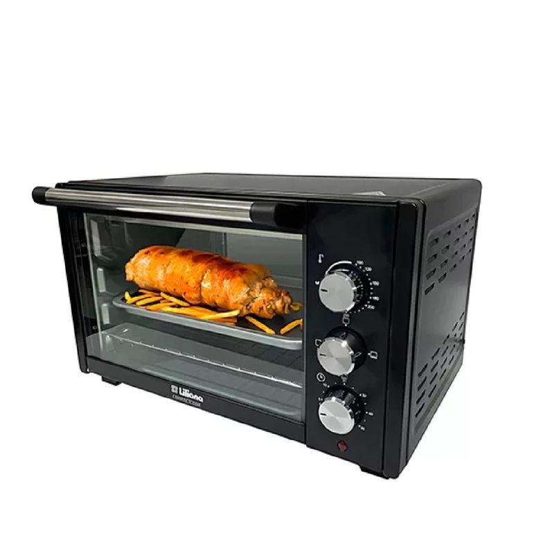 Horno Eléctrico Liliana 20 Litros, Modelo: AAO200. Este horno eléctrico permite seleccionar el modo de cocción desde arriba o de ambos lados y ofrece una temperatura ajustable hasta 250º C. Con una capacidad de 20 litros, está equipado con perillas de comandos indicadoras de funciones. La temperatura máxima alcanza los 250ºC y cuenta con un temporizador programable con aviso sonoro de hasta 60 minutos. Incluye una bandeja antiadherente y una rejilla metálica. Los accesorios son removibles para simplificar la limpieza interior. El horno dispone de patas antideslizantes, un indicador lumínico de funcionamiento y 4 resistencias de acero inoxidable. Sus dimensiones son 27 cm de alto x 46 cm de ancho x 32,5 cm de profundidad y tiene una potencia de 1400 watts.