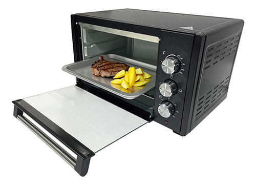Incluye cómodas perillas de comandos indicadoras de funciones y un timer programable con aviso sonoro de hasta 60 minutos. Además, viene con una bandeja antiadherente y una rejilla metálica, ambos accesorios son removibles para facilitar la limpieza interior del horno.