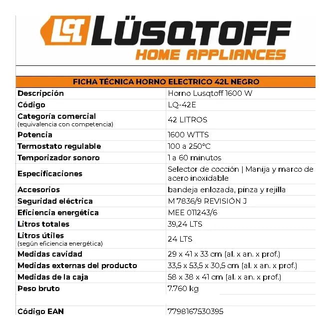 HORNO ELECTRICO LUSQTOFF 1600W 42 LTS LQ-42CRE COLOR CREAM
