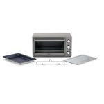 Incluye accesorios prácticos: varilla para rostizar con asa, rejilla para hornear, bandeja para migas y bandeja para hornear con recubrimiento Oster DiamondForce, 15 veces más fácil de limpiar** y resistente al uso intensivo.