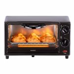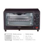 La puerta de vidrio templado ofrece resistencia y visibilidad durante la cocción, mientras que la bandeja recolectora de migas facilita la limpieza diaria. Compacto, moderno y en color negro, es el complemento perfecto para tu cocina.