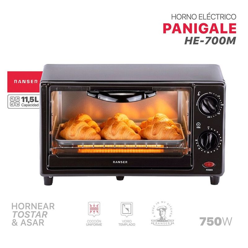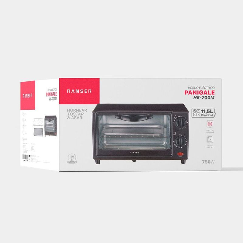 El Ranser Panigale HE-700M es un horno eléctrico compacto y versátil, diseñado para quienes buscan practicidad sin ocupar demasiado espacio en la cocina. Con 11,5 litros de capacidad y 750 W de potencia, permite hornear, tostar y asar de manera sencilla y eficiente.