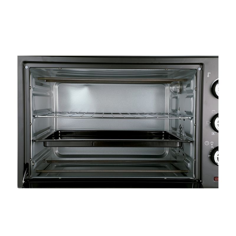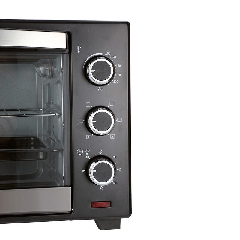 Cuenta con luz interior para que puedas supervisar tus preparaciones sin necesidad de abrir la puerta, y un regulador de temperatura que va desde los 100°C hasta los 250°C, permitiéndote ajustar el calor ideal para cada receta. Además, su temporizador de hasta 60 minutos te ayuda a controlar los tiempos de cocción con precisión.