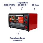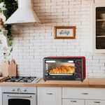 Su diseño compacto y atractivo en color rojo lo convierte en un elemento decorativo en cualquier cocina. Equipado con un temporizador de hasta 1 hora y un sistema de convección, garantiza una cocción uniforme y precisa, mientras que su grill permite dorar y gratinar tus comidas a la perfección.