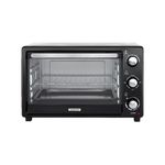Es un horno eléctrico con un diseño moderno y funcional en color acero inoxidable y negro. Cuenta con una puerta de vidrio amplia y comandos de control accesibles. Además, dispone de tres posiciones de bandeja para seleccionar según el tipo de alimentos que se quieran preparar. Accesorios incluidos: Rejilla de Grill, Bandeja Asadera Esmaltada, y Bandeja portamigas.