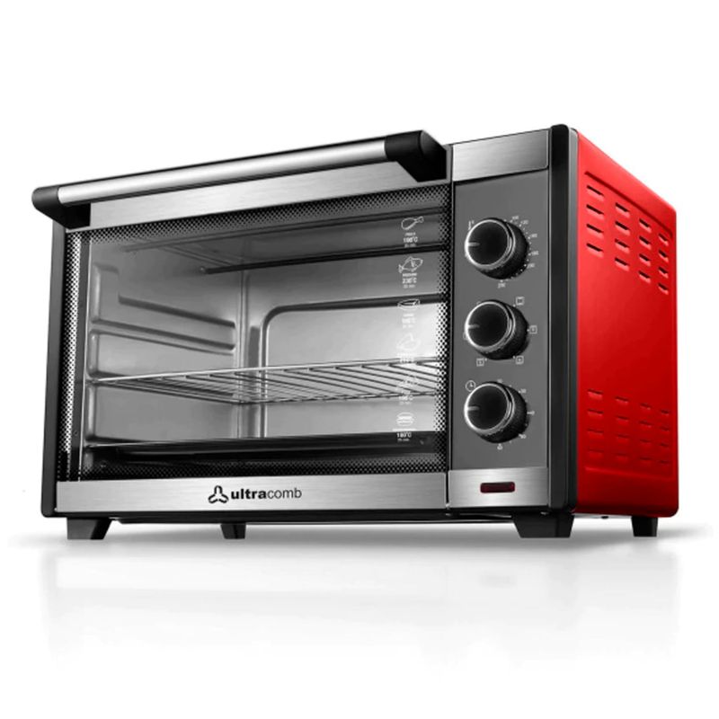 negro y rojo, el horno eléctrico Ultracomb UC-45CN combina estética, potencia y funcionalidad, convirtiéndose en un aliado indispensable para tu cocina. Ideal para quienes buscan un horno eléctrico completo, confiable y de gran capacidad para el uso diario.