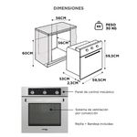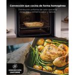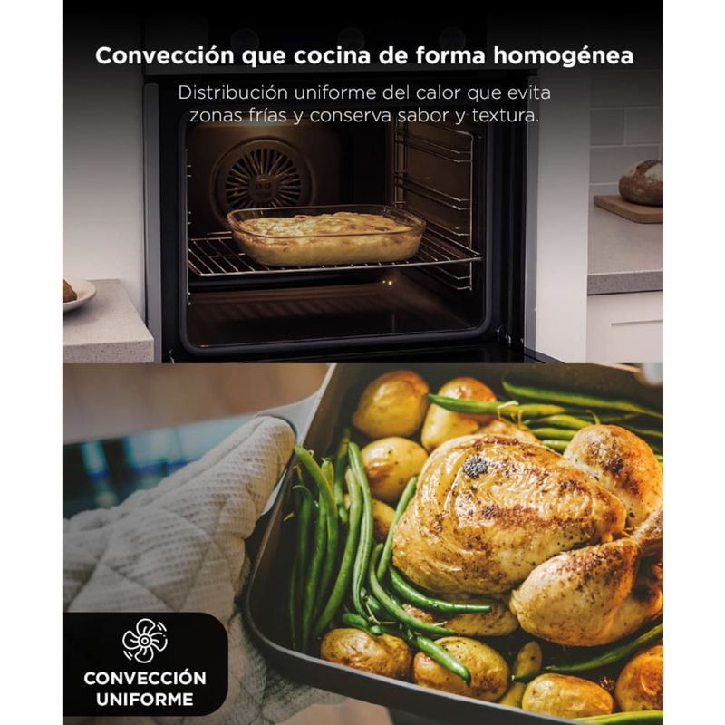 El interior del horno distribuye el calor de forma pareja permitiendo preparar carnes pastas panes o postres con resultados homogéneos. Sus controles intuitivos facilitan seleccionar temperatura y tiempo sin complicaciones. Es un electrodoméstico pensado para el uso diario garantizando estabilidad en cada cocción.