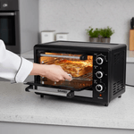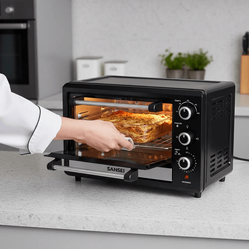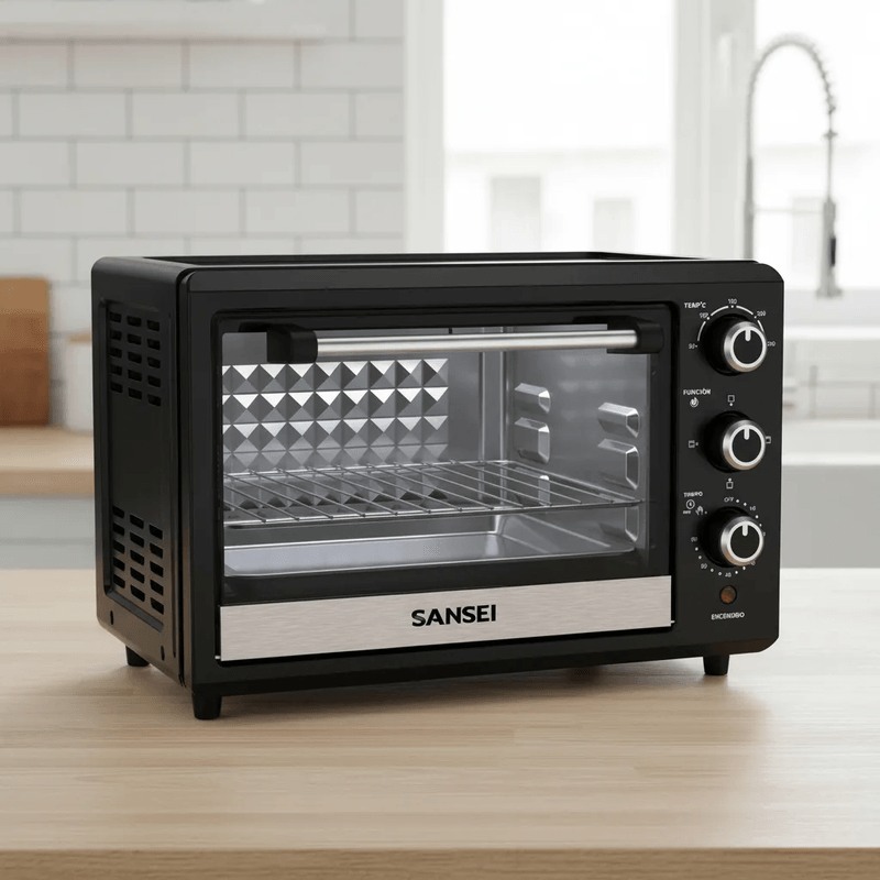 El Horno Grill Sansei Negro de 17 litros es la solución ideal para quienes buscan versatilidad y eficiencia en la cocina. Con una potencia de 1500 kW, este horno eléctrico permite alcanzar temperaturas de hasta 250 °C, lo que lo convierte en un aliado perfecto para asar, hornear y gratinar tus platillos favoritos. Su diseño compacto de mesa, con dimensiones de 35.5 cm de ancho, 47.5 cm de profundidad y 34.9 cm de altura, se adapta fácilmente a cualquier espacio. Además, cuenta con un temporizador de hasta 1 hora y un termostato que te permite controlar la cocción con precisión, asegurando resultados perfectos en cada uso. El horno incluye una rejilla y una bandeja, facilitando la preparación de múltiples recetas. Su eficiencia energética de clase A garantiza un consumo responsable, ideal para quienes buscan cuidar su economía y el medio ambiente. Con un peso de solo 6 kg, es fácil de mover y almacenar. La puerta de vidrio de una capa y la alarma sonora añaden un toque de seguridad y comodidad, haciendo de este horno una opción práctica y funcional para cualquier hogar.