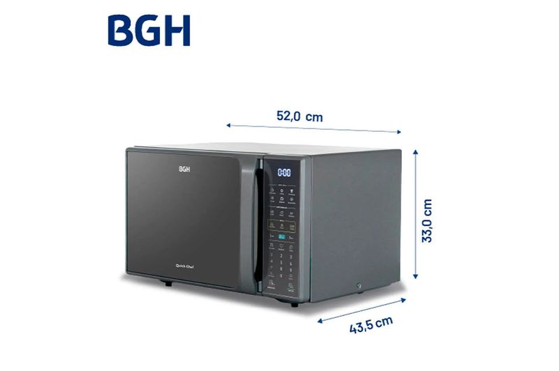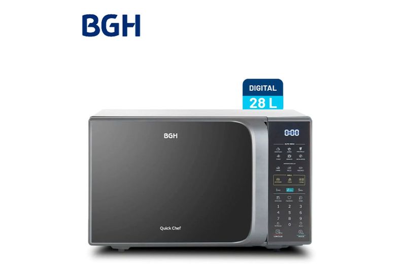 El Microondas Digital BGH B228DS20I Silver de 28 litros combina gran capacidad, potencia y diseño premium, ideal para cocinas modernas que buscan funcionalidad sin resignar estilo. Su acabado silver con puerta mirror aporta un look sofisticado, mientras que el control digital por membrana y display LED blanco garantizan un manejo preciso y sencillo.