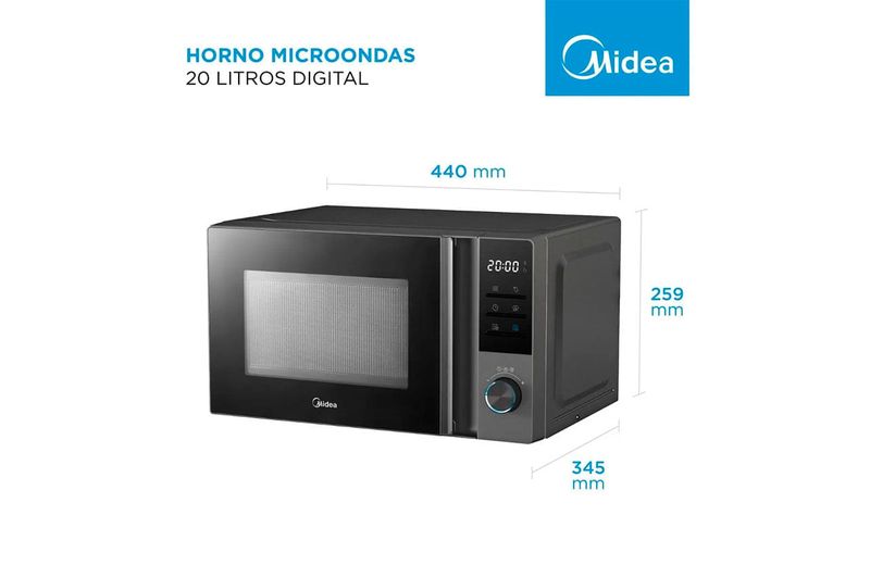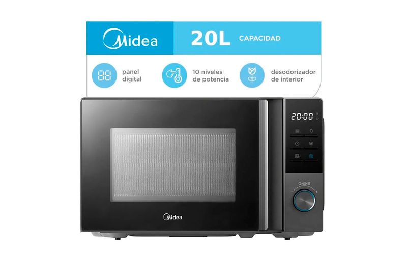 El Microondas Midea MW-DN120GAR1 de 20 litros es una opción práctica, compacta y moderna para el uso diario en la cocina. Su control digital y 10 programas automáticos permiten calentar y descongelar alimentos de forma sencilla y eficiente.