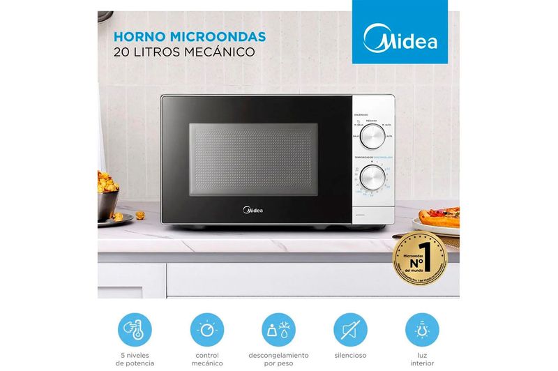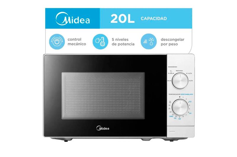 Pensado para quienes buscan practicidad y confiabilidad, este microondas combina tamaño compacto, bajo consumo y la calidad reconocida de Midea, convirtiéndose en un aliado indispensable para el día a día.