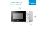 El Microondas Midea MW-MN120WAR1 de 20 litros es una opción práctica y funcional para el uso diario en el hogar. Su diseño compacto y color blanco lo hacen ideal para cualquier cocina, ofreciendo un manejo simple y eficiente.