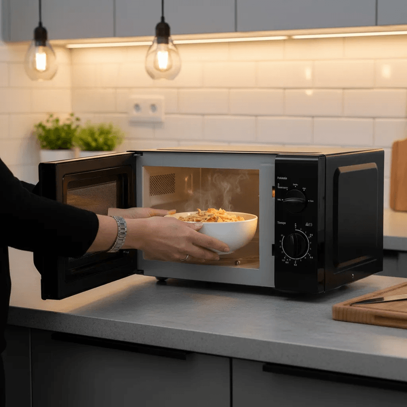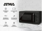 El Microondas Rotativo 20Lts 700w Negro Atma es un electrodoméstico que facilita la preparación rápida y eficiente de comidas.