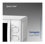El microondas Quick Chef es ideal para vos ya que presenta simples funciones de uso. Con la opción de programación de cocciones vas a poder cocinar tus platos preferidos con solo seleccionar el tipo de alimento y el peso correspondiente.