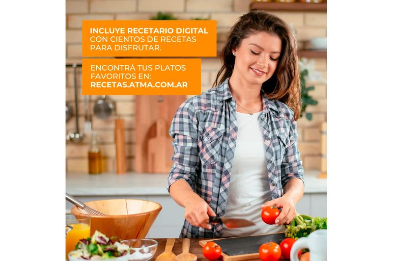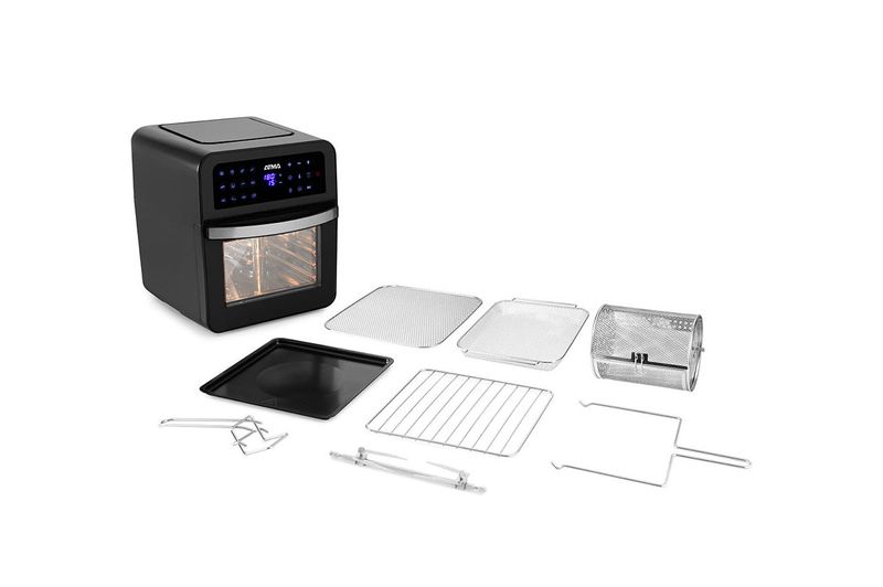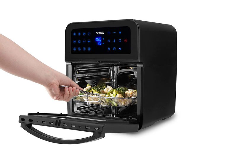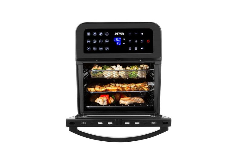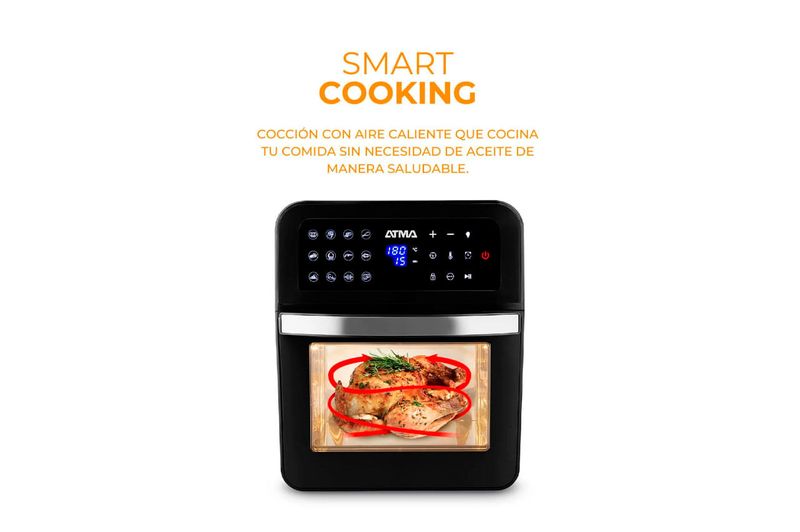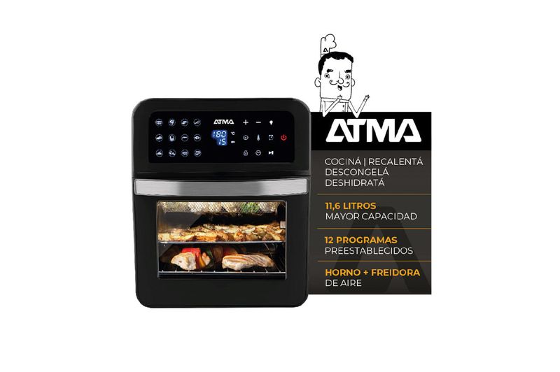 Con La Freidora de Aire y Horno 11,6L 1800w Atma cocina con innovación y salud. Descubrí la versatilidad de sus 12 programas preestablecidos, diseñados para adaptarse a cualquier preferencia, desde carnes jugosas hasta budines suaves. Su generosa capacidad de 11,6 litros facilita la preparación de comidas familiares con eficacia. La potencia de 1600-1800W asegura un rendimiento eficiente y preciso. Los accesorios, como la placa tipo rack y la canasta giratoria, ofrecen opciones saludables y crujientes. Experimenta la cocina gourmet con la pinza, bandeja, rejilla y el Spiedo giratorio.