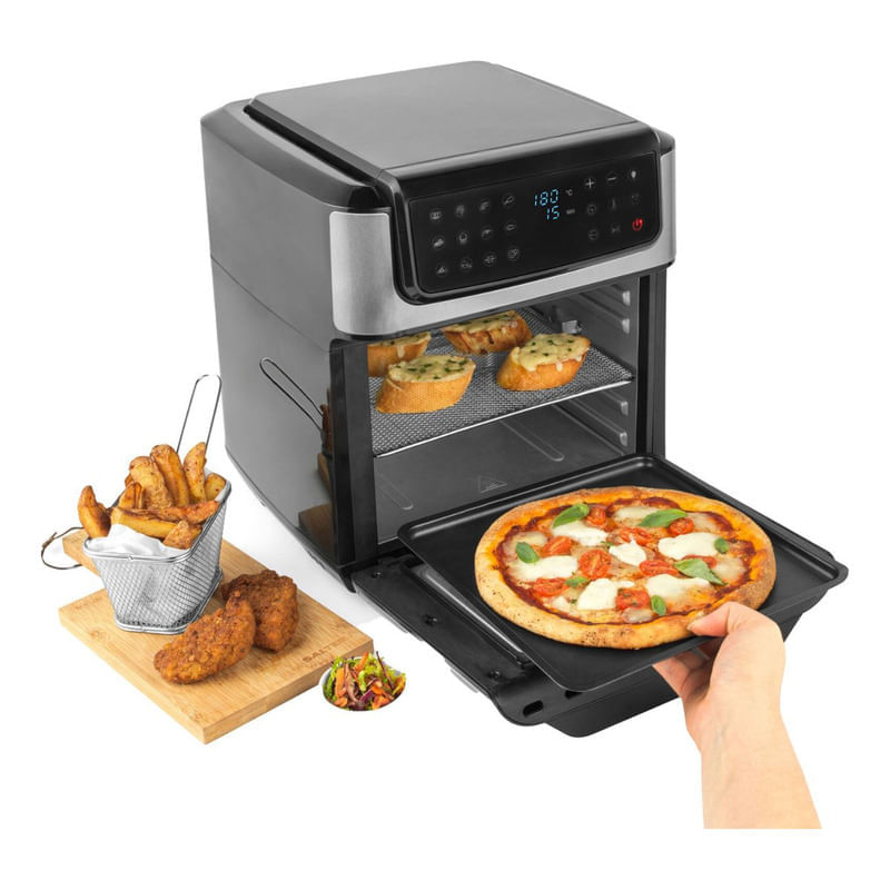 Con 1.800 W de potencia, este horno freidora asegura una cocción eficiente y uniforme, ideal para simplificar tu día a día en la cocina.