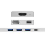 Este versátil hub 5 en 1 transforma un solo puerto Tipo-C en cinco puertos externos, incluidos tres puertos USB 3.0, un puerto Tipo-C y un puerto HDMI, abordando de manera eficaz el problema de los puertos limitados en las computadoras y cumpliendo sin esfuerzo con los amplios requisitos de la oficina.