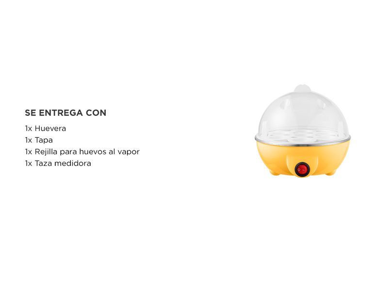 Incluido con la huevera encontrarás una taza medidora para asegurarte de que obtengas la consistencia perfecta en tus huevos cada vez. La tapa transparente te permite monitorear el proceso de cocción sin necesidad de levantarla, lo que facilita aún más su uso.