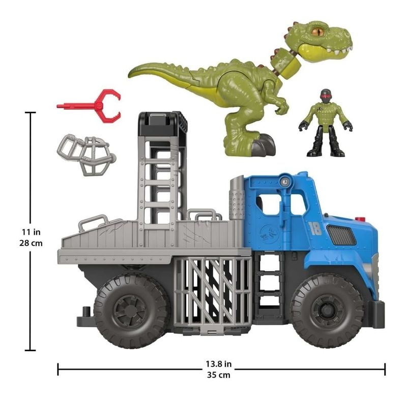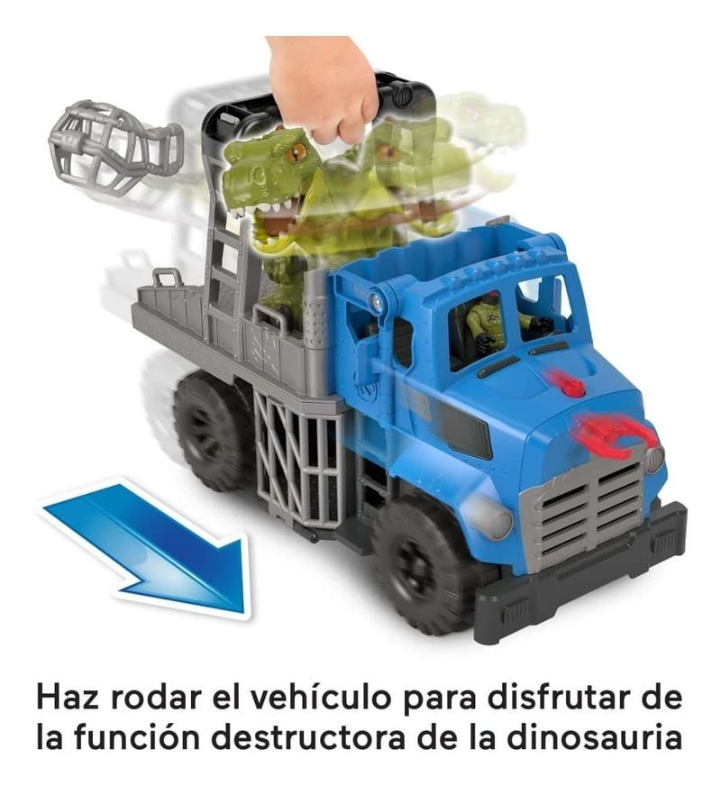 Imaginext Jurassic World Camión Transportador Gvv50 Mattel Los niños pueden correr para capturar a los dinosaurios que andan sueltos por el salón con el vehículo Break Out Dino Hauler de Jurassic World de Imaginext y el conjunto de dinosaurios de Fisher-Price. Este vehículo para empujar cuenta con un lanzador de proyectiles para atrapar a los dinosaurios y con un amplio espacio donde tenerlos vigilados. Pero cuidado... cuando los niños empujen el vehículo, ¡la dinosauria se agitará furiosamente hasta que se libere de la mordaza! Conjunto de vehículo de transporte de Jurassic World con dinosauria e impresionante función de destrucción Empuja el vehículo para ver cómo la dinosauria se enfurece y escapa Engancha la mordaza en la mandíbula de la dinosauria para tratar de contenerla El vehículo de transporte tiene capacidad para 2 figuras, cuenta con un lanzador de proyectiles y espacio de almacenamiento en la jaula y bajo el capó (las figuras adicionales se venden por separado y están sujetas a disponibilidad). Edad 3+