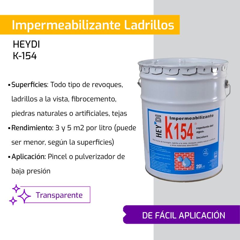 Impermeabilizante Ladrillos Hidrorepelente Incoloro Heydi K-154 20Lts