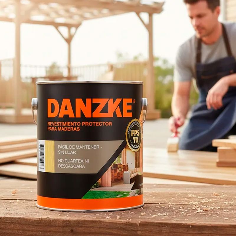 El recubrimiento DANZKE está elaborado con resinas de alto grado de penetración, filtros UV, pigmentos y aditivos de excelente calidad para la protección y belleza de las maderas expuestas a climas severos y a cambios bruscos de temperatura. Su microfilm microporoso y elástico, se integra a las fibras, sin cuartear, descascarar o ampollar.