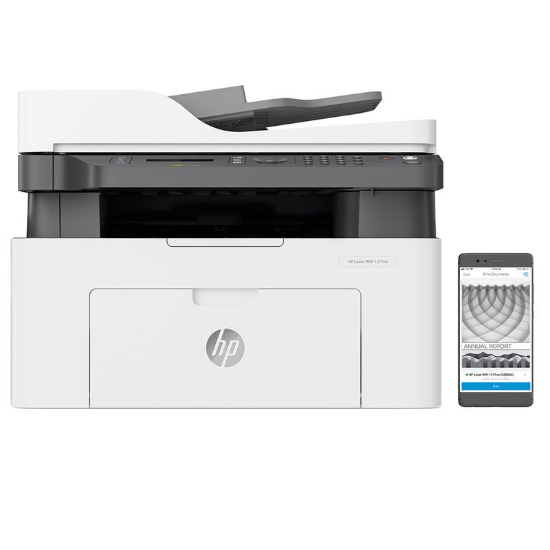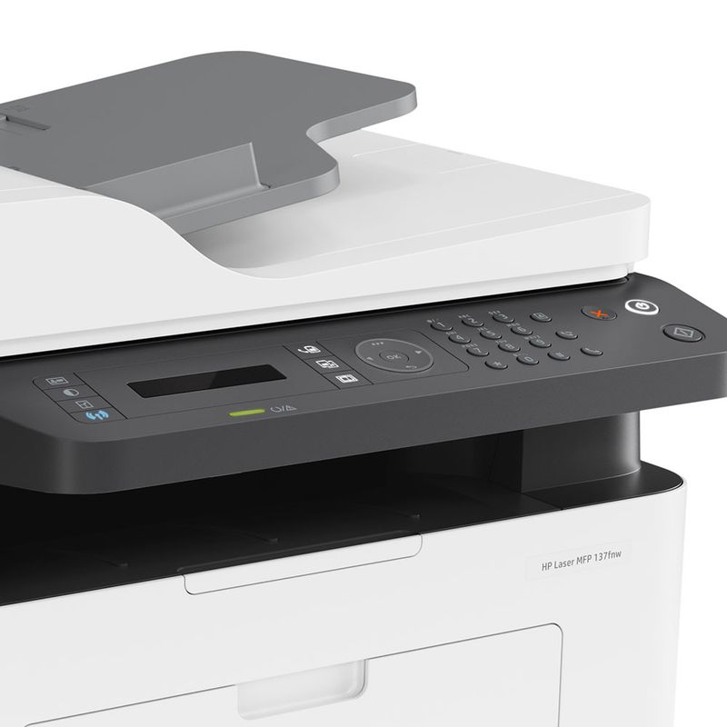 - 4ZB84A HP Laser MFP 137fnw Impresora multifuncional; Cartucho de impresión inicial HP LaserJet preinstalado, negro (aproximadamente 500 páginas); Cable de alimentación; Cable USB; Cable telefónico; Guía de instalación; Guía de referencia; Folleto de informes regulatorios