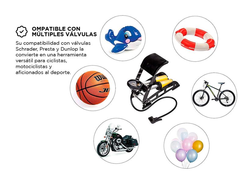 ideal para: inflar bicicletas, motocicletas y otros equipos.