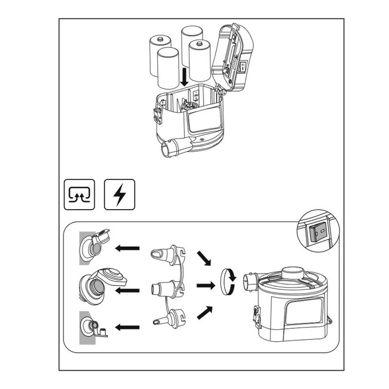 El inflador eléctrico PowerTouch con pilas de Bestway es la mejor opción para inflar y desinflar tus productos hinchables favoritos, como colchones, juguetes de piscina, esterillas de camping o flotadores, entre muchos otros. Incluye tres adaptadores para válvulas universales que se adaptan a casi cualquier válvula de inflado, por lo que podrás utilizarlo con diferentes productos.