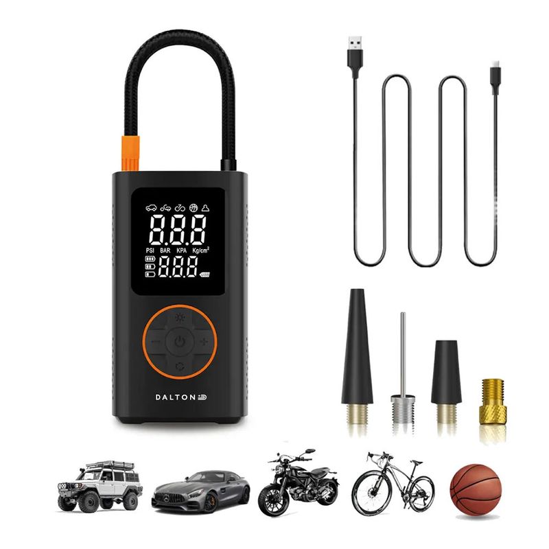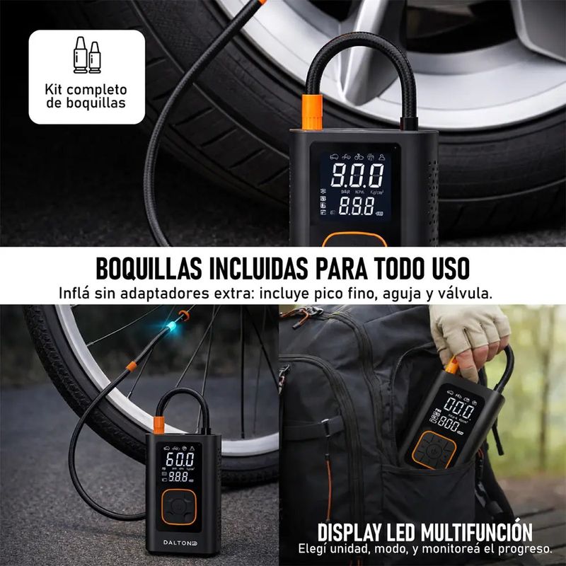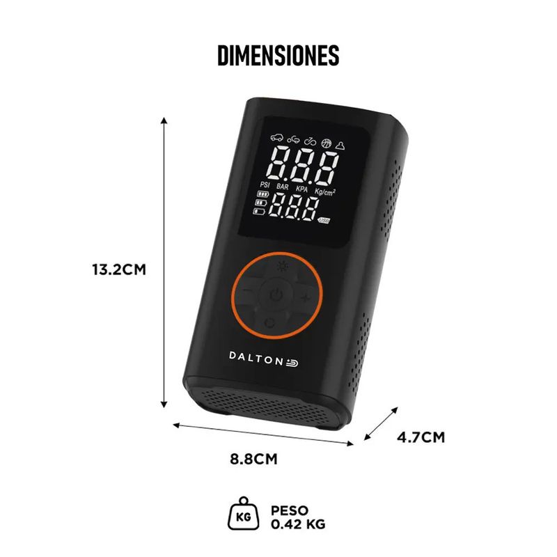 Incluye: Manguera, cable USB, bolsa y picos para pelota, bicicleta, autos y globos