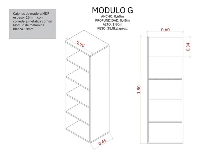 HogarDecoMueblesInterior De Placard Ropero Vestidor Modulo G de 0,60m