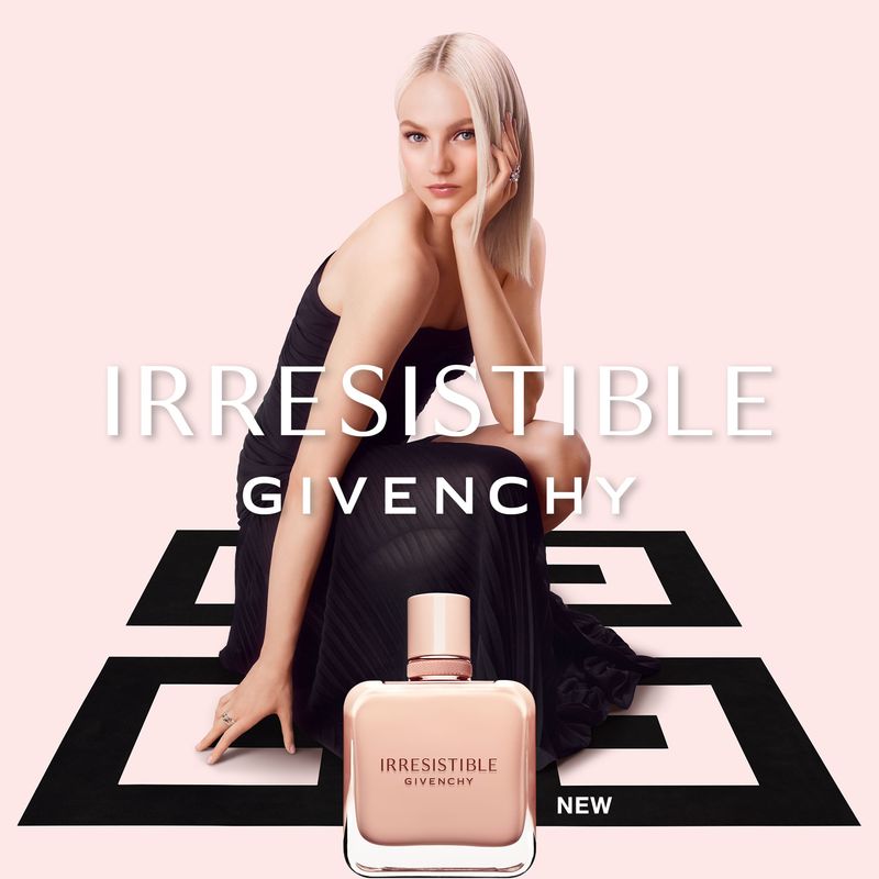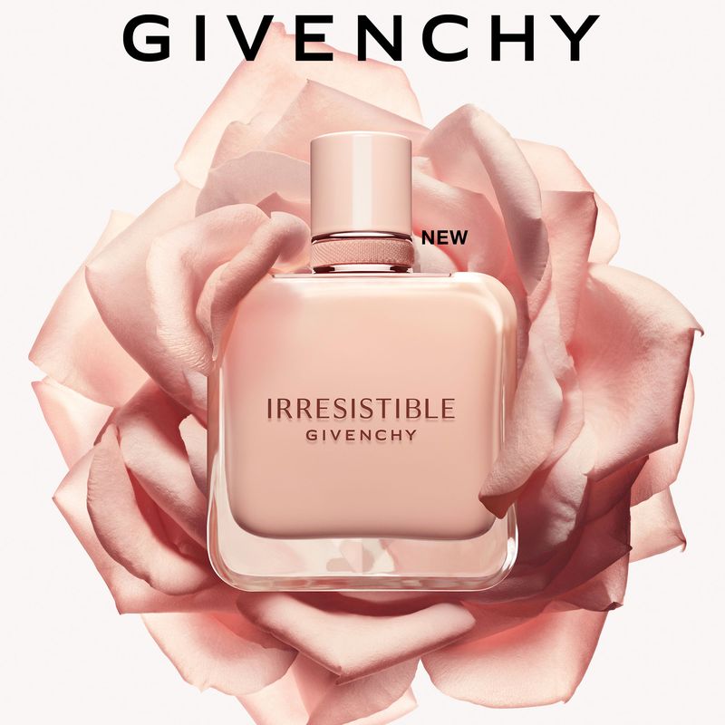 Más alta costura que nunca, el emblemático frasco con efecto prismático está adornado con el nuevo toque sofisticado de una tapa lacada rosa nude que muestra el icónico logotipo 4G de la Maison Givenchy. Imposible de resistir, Irresistible celebra sus múltiples facetas en un baile alegre y delicioso.