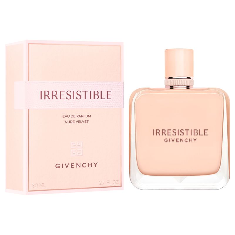 Déjate envolver por el encanto magnético de Irresistible Eau de Parfum Nude Velvet, la nueva fragancia femenina de Givenchy. El encuentro cautivante de un delicado ramo de rosas con el aterciopelado iris crea una irresistible adicción envolvente. Irresistiblemente voluptuosa, el Eau de Parfum Nude Velvet realza divinamente la emblemática firma de madera de rosa de Irresistible, ahora facetada con una atractiva nota almizclada.