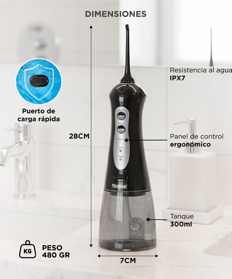 Su mango ancho y texturizado mejora el agarre durante el uso. La resistencia IPX7 permite utilizarlo en la ducha con seguridad. El tanque de 300 ml evita recargas frecuentes. Es un dispositivo cómodo y funcional.