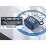 Llévate el gran sonido JBL Pro donde quiera que vayas. El atrevido y colorido altavoz Bluetooth ultraportátil JBL Go 4 cabe en la palma de la mano y ofrece un sonido JBL Pro Sound nítido y alto con graves potentes y potentes. Su asa integrada de nuevo diseño hace que sea fácil de llevar a cualquier parte; además, puedes elegir el que se adapta más a tu estilo entre la amplia variedad de colores. Además, es resistente al polvo y al agua, por lo que es ideal para llevar a cualquier parte. Gracias a las hasta 7 horas de tiempo de reproducción, podrás disfrutar a tope de los divertidos días de viaje o las noches tranquilas bajo las estrellas. Combina dos Go 4 para obtener un sonido estéreo o conecta de forma inalámbrica varios altavoces compatibles con JBL Auracast para obtener un sonido aún más potente. Sube el volumen y deja que tu música te lleve a cualquier parte. Características generales Potencia de salida 4.2 Características Audio Respuesta de frecuencia dinámica 90 Hz – 20 kHz Medidas Dimensiones (cm) 9.4 x 7.8 x 4.2 Dimensiones (in) 3.7 x 3.0 x 1.7 Weight (kgs) 0.19 Weight (lbs) 0.69 Características de control y conexión Perfiles Bluetooth A2DP V1.4, AVRCP V1.6 Rango de frecuencia de transmisión Bluetooth 2400 MHz – 2483.5 MHz Versión Bluetooth 5.3 Batería Charging time (hrs) 3 Tiempo de reproducción de musica 7 Características Bluetooth Sí Charging cable Sí A prueba de salpicaduras Sí A prueba de agua Sí Wireless Sí Conexión Multipunto Sí Batería recargable Sí Certificación IPX IP67 Supports Auracast Sí Dustproof Sí Contenido de la caja 1 altavoz JBL Go 4 1 cable de tipo C 1 guía de inicio rápido