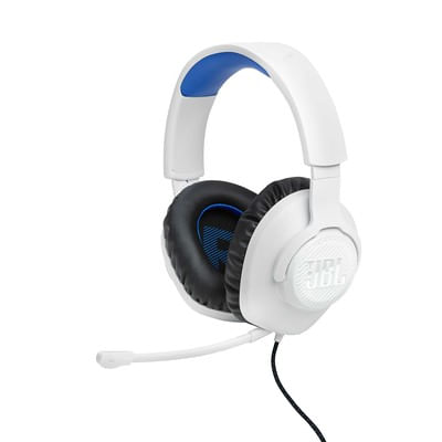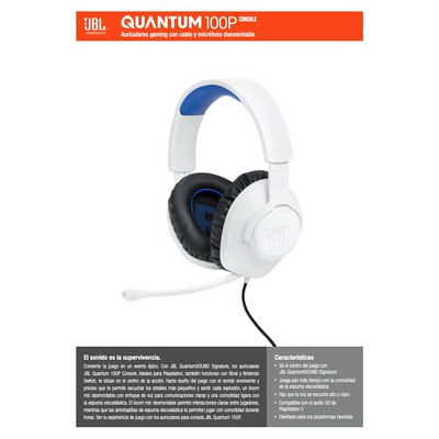 Auricular Gamer JBL Quantum 100. Micrófono para comunicación. Compatibilidad con todas las plataformas y conectores: 3.5 mm. Control de volumen y selector de sonido entre chat y juegos. Almohadillas suaves y muy cómodas. Sonido preciso y envolvente. Software de optimización de sonido. Color Blanco