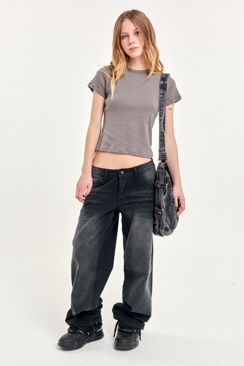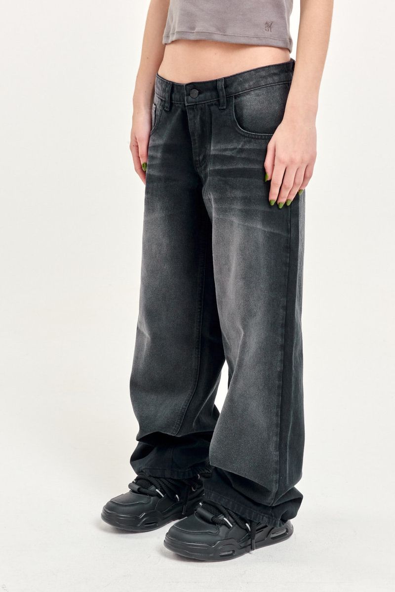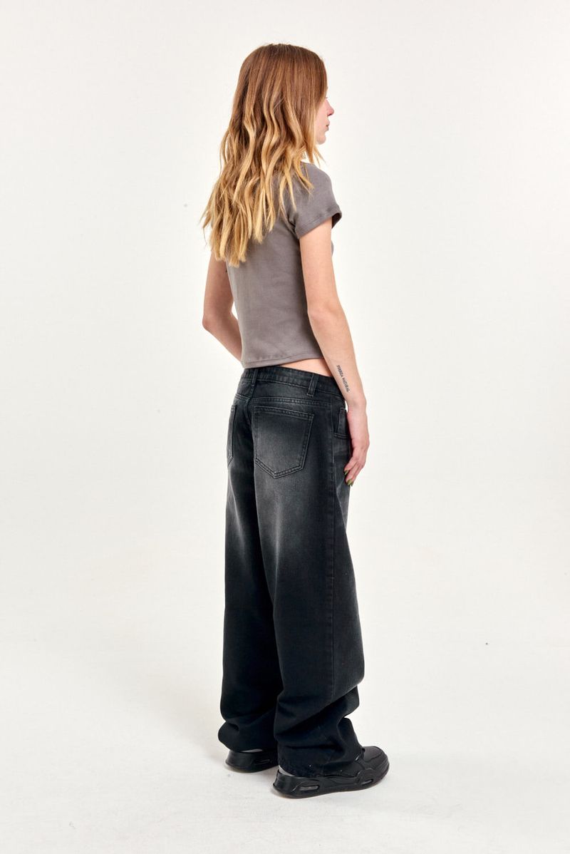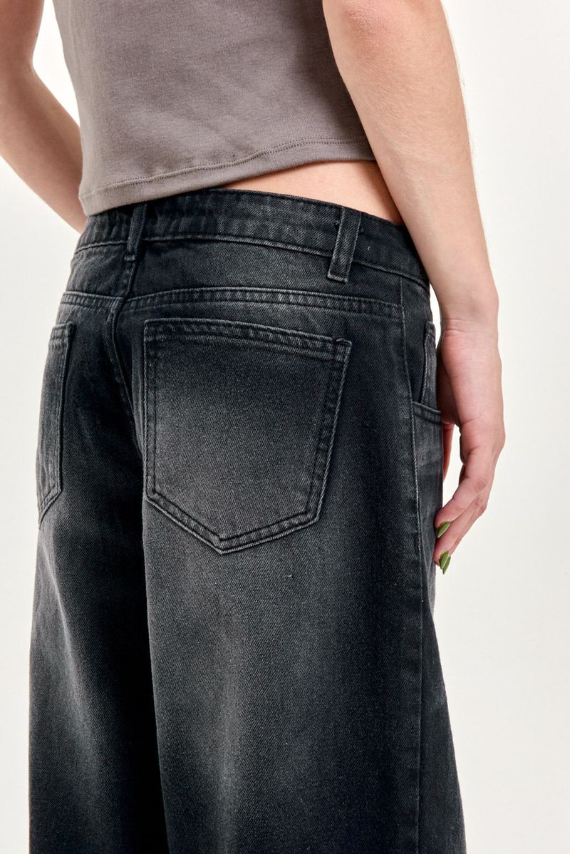 Jean 5 bolsillos con fit baggy, tiro bajo. Es ajustado en la cintura y se ensancha en las piernas hasta el tobillo donde se vuelve a ajustar logrando un calce balloon. Esta confeccionado en un tejido de gabardina liviana que le da un aspecto más relajado al calce. El lavado es un proceso artesanal, por lo que una prenda puede presentar variaciones leves con respecto a otras.