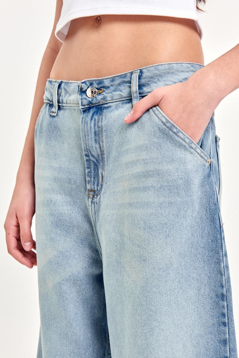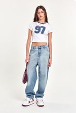 Jean de 5 bolsillos en denim liviano con corte baggy: ajustado en cintura, amplio en piernas. Terminación lavada con aspecto desgastado. Cada prenda pasa por un proceso artesanal, lo que le da una identidad única e irrepetible. Combiná con tops ajustados, camisas sueltas o buzos relajados.