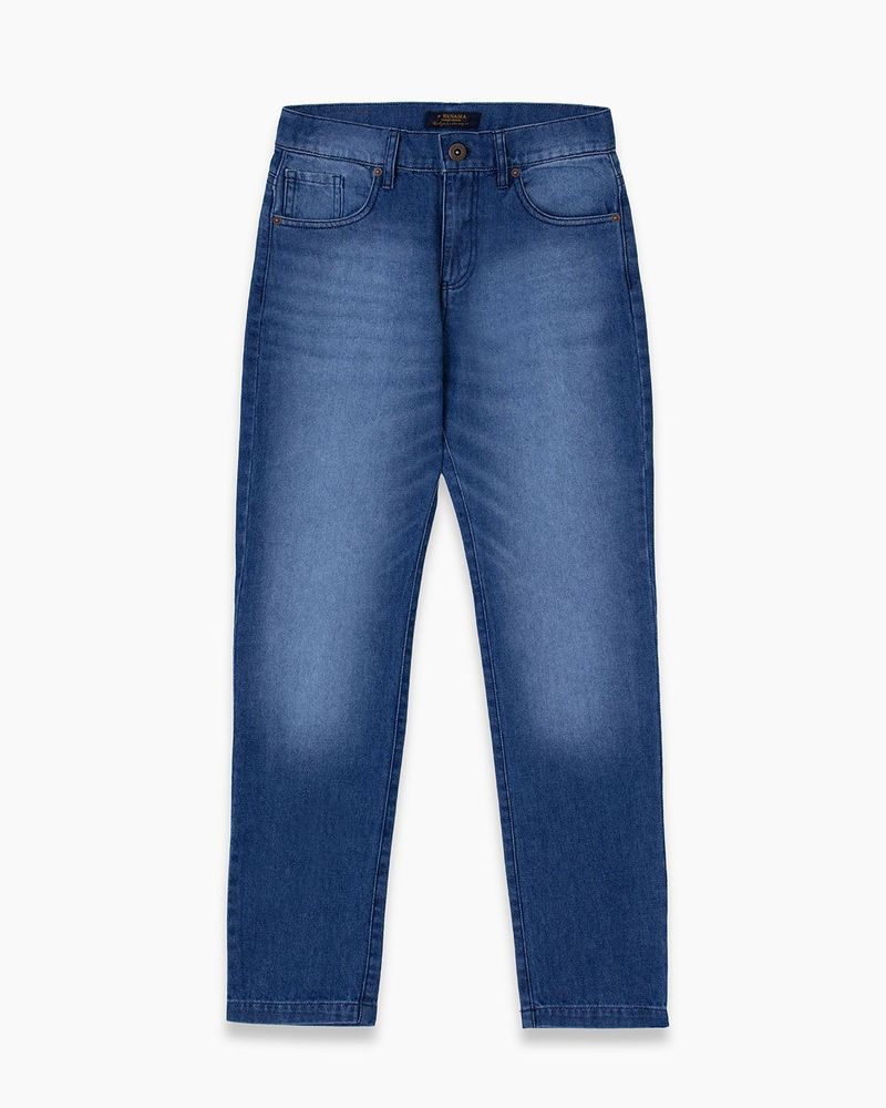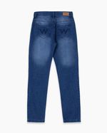 Pantalón de jean cinco bolsillos confeccionado en Denim confort. Posee bolsillos traseros con alegoría bordada. Calce recto, relajado. Lavado oscuro. Un ítem que no puede muy actual que no puede faltar esta temporada y va con todo