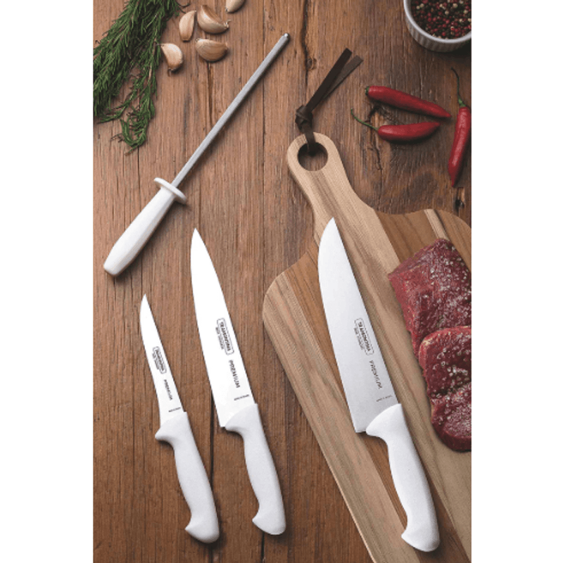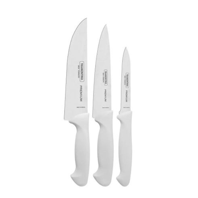 Set de 3 cuchillos Tramontina en elegante color blanco. Fabricados en acero inoxidable de alta calidad con mango de polipropileno resistente.