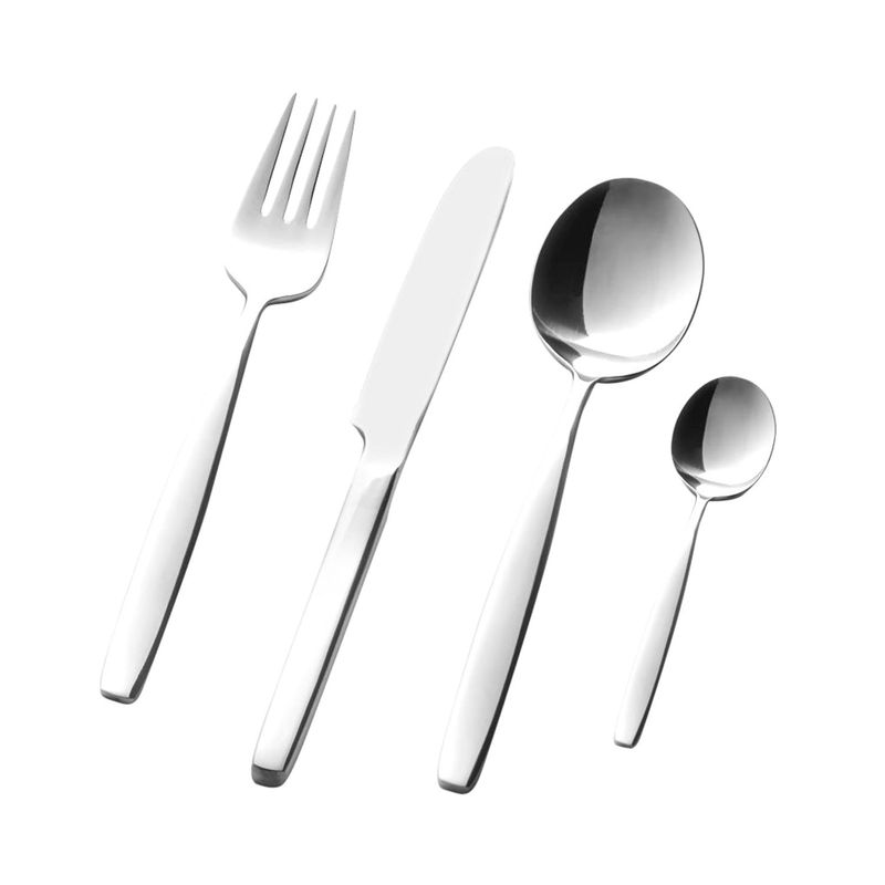 Set de Cubiertos Vento - 24 Piezas - Acabado Brillante Composición del Set: - 6 Tenedores de Mesa. Largo total: 20 cm. Largo mango: 14 cm. - 6 Cuchillos Serrucho. Largo total: 22.5 cm. Largo mango:12 cm. - 6 Cucharas de Mesa. Largo total: 20 cm. Largo mango: 14 cm. - 6 Cucharas de Té. Largo total: 13 cm. Largo mango: 6 cm.